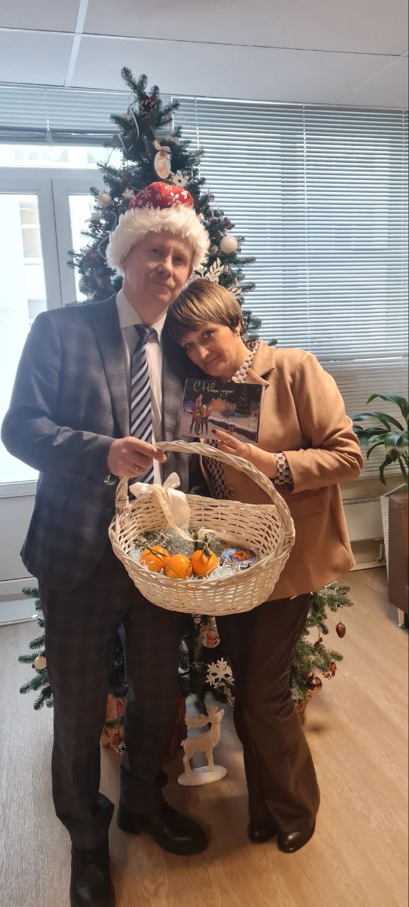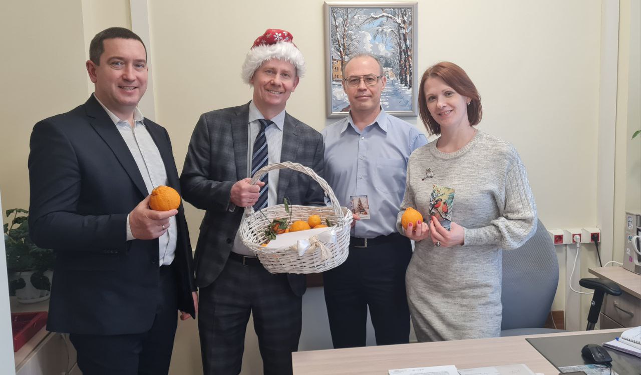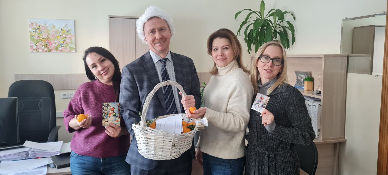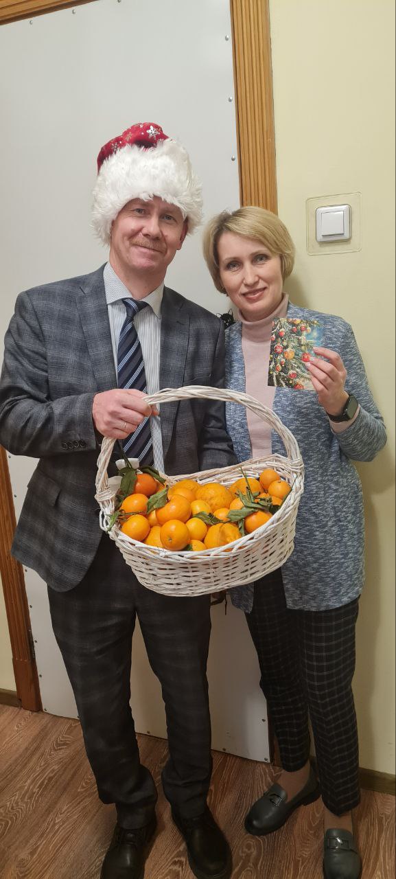 Отличный пример того, как можно быть современным, не отказываясь от самого доброго из прошлого!В начале декабря в холле 2 этажа появляется почтовый ящик для поздравительных открыток, которые в канун Новогодних праздников вручаются адресатам. В этом году члены профкома Данилов Олег и Козак Татьяна доставили поздравления вместе с полезными витаминами - мандаринами. Улыбки и хорошее настроение коллег стали хорошим завершением рабочей недели.