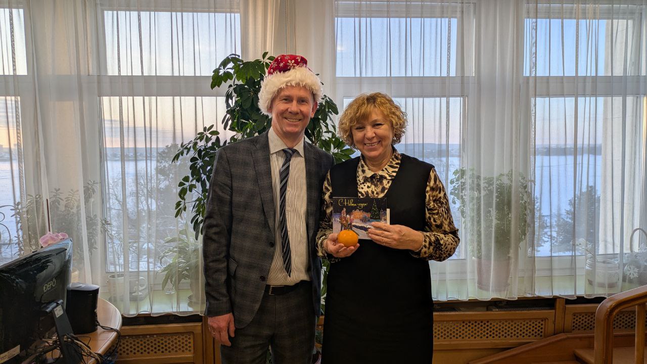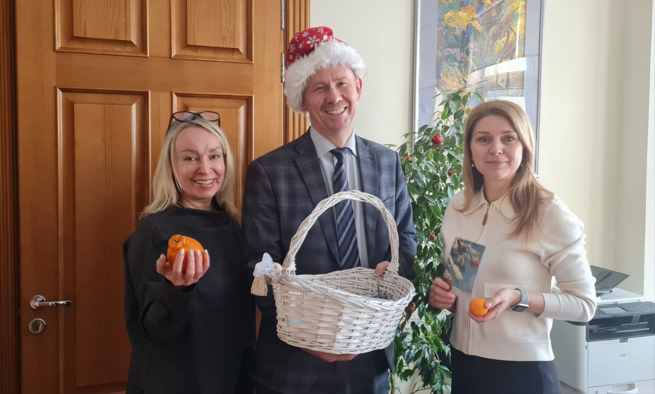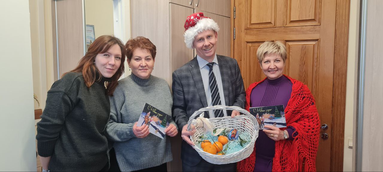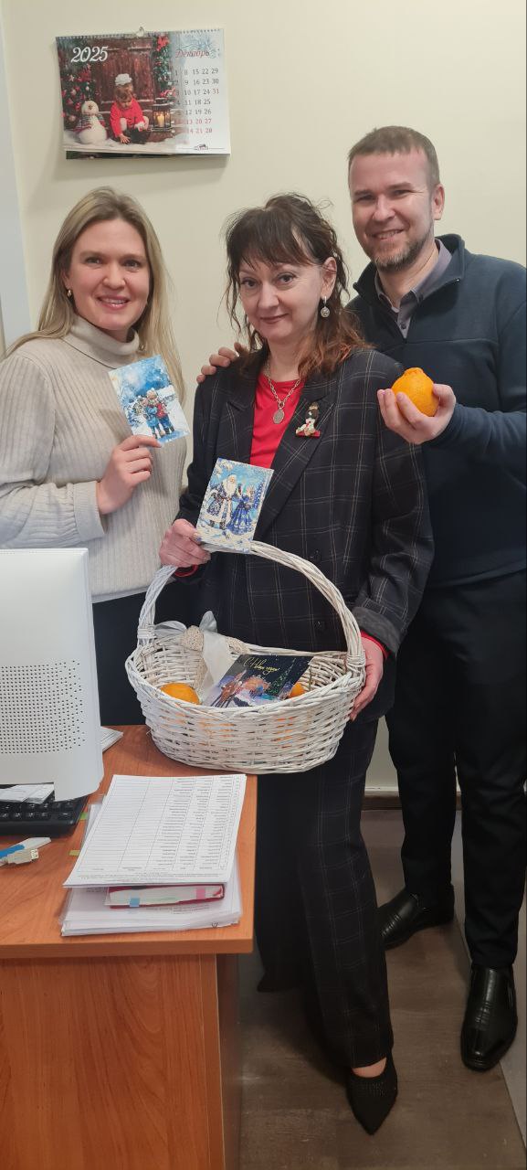 Отличный пример того, как можно быть современным, не отказываясь от самого доброго из прошлого!В начале декабря в холле 2 этажа появляется почтовый ящик для поздравительных открыток, которые в канун Новогодних праздников вручаются адресатам. В этом году члены профкома Данилов Олег и Козак Татьяна доставили поздравления вместе с полезными витаминами - мандаринами. Улыбки и хорошее настроение коллег стали хорошим завершением рабочей недели.